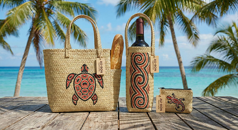 Cultural Hybridity Concept: A fusion of lifestyles. We seamlessly integrated functional details like the Baguette Pocket into the Melanesian basket structure, bridging local craft with the island's French heritage.