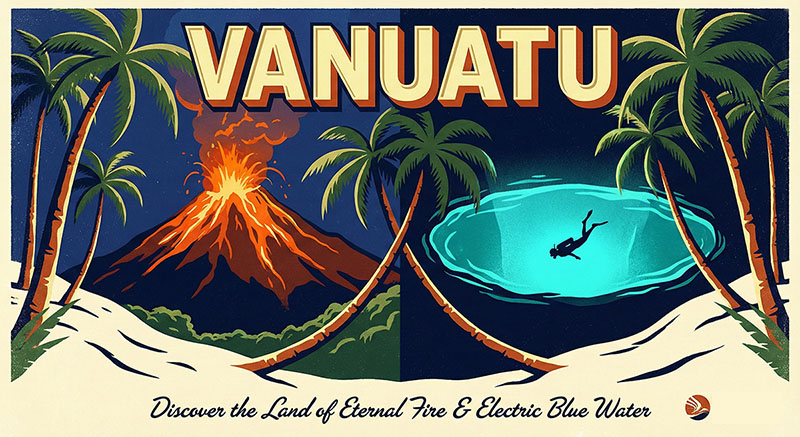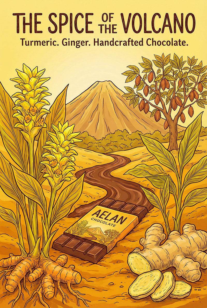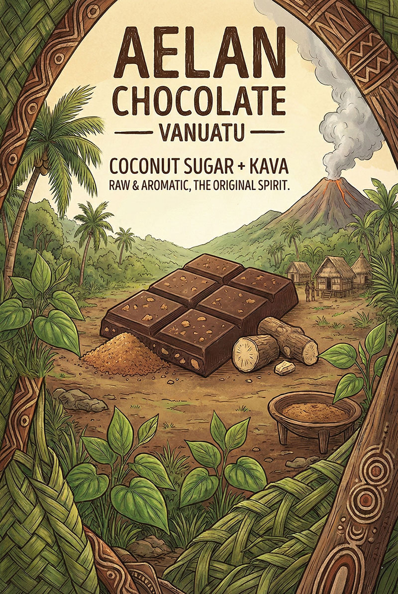 Origin Storytelling Concept: Leveraging Vanuatu's unique geography. We visually connected the active volcanoes with the richness of the cocoa beans, positioning the product not just as "Made in Vanuatu," but "Forged by Fire."
