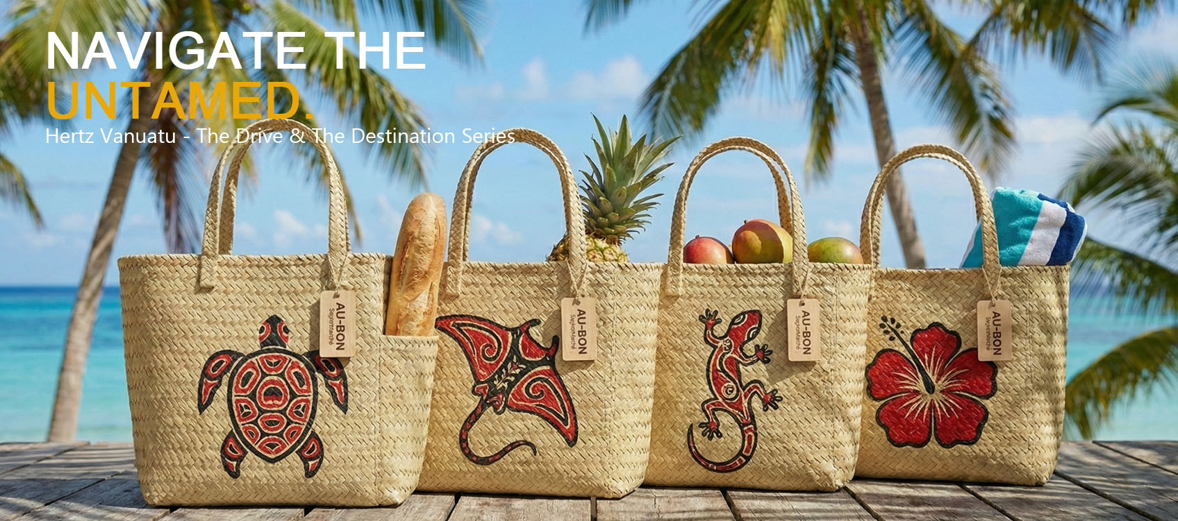 Cultural Hybridity Concept: A fusion of lifestyles. We seamlessly integrated functional details like the Baguette Pocket into the Melanesian basket structure, bridging local craft with the island's French heritage.