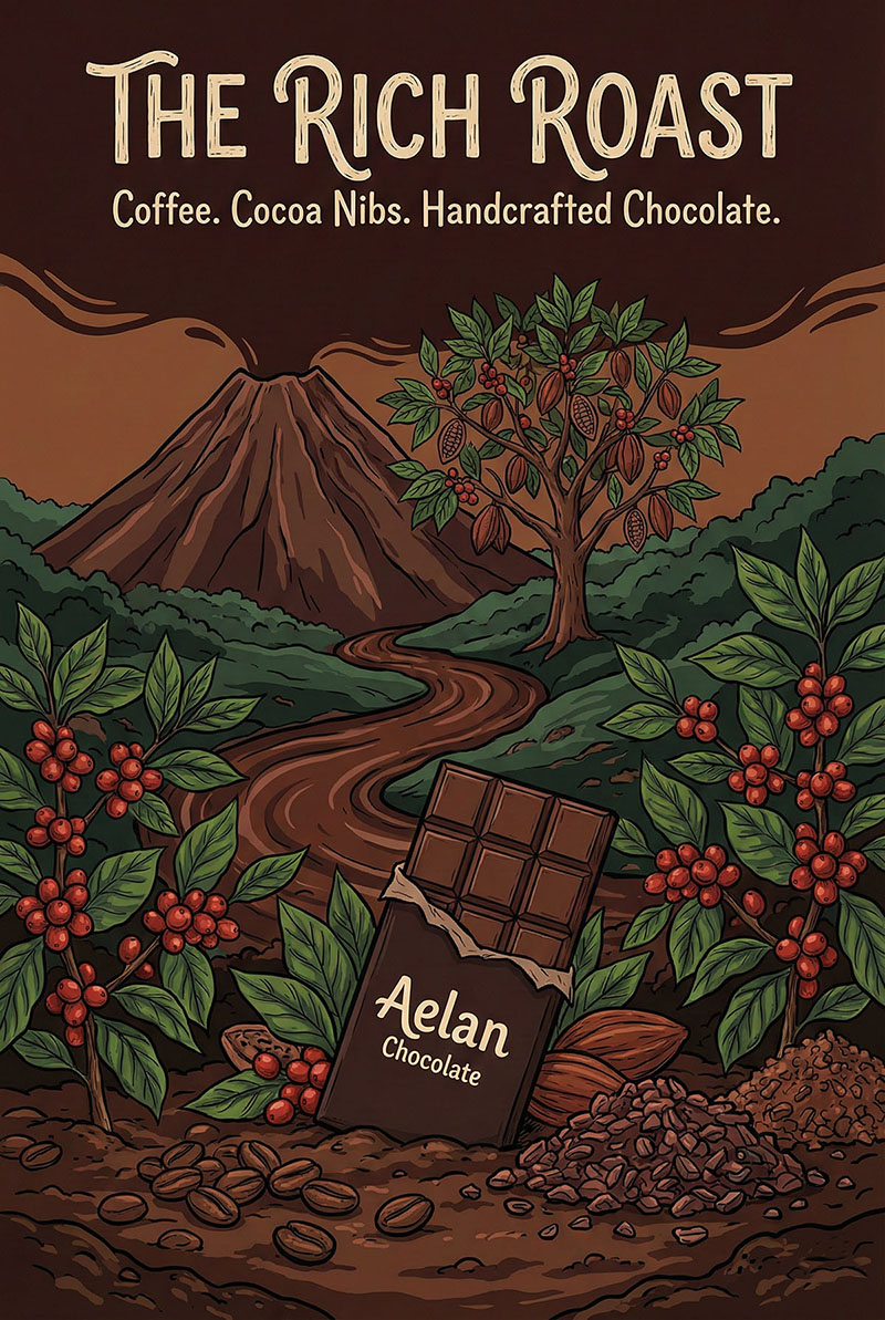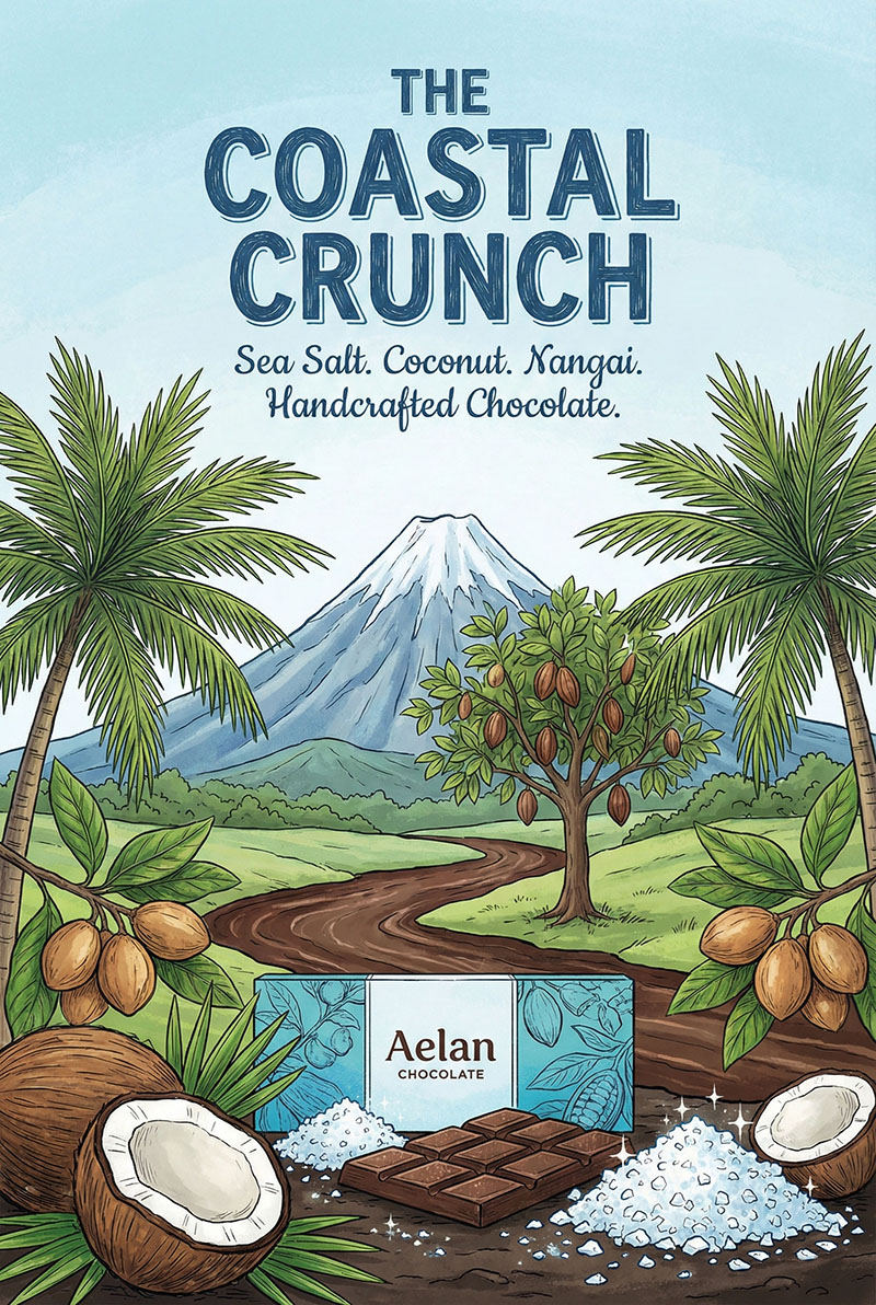 Origin Storytelling Concept: Leveraging Vanuatu's unique geography. We visually connected the active volcanoes with the richness of the cocoa beans, positioning the product not just as "Made in Vanuatu," but "Forged by Fire."