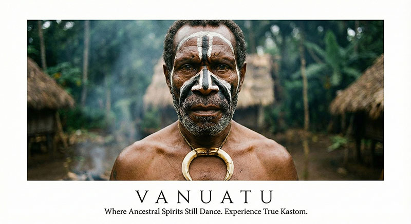 The Cultural Portrait (Realism Style) Image: Ancestral Spirits (Portrait of Ni-Vanuatu man) Target: The Cultural Anthropologist The Soulful Gaze Concept: We moved beyond scenic postcards to capture the human soul. High-fidelity photography focuses on the intensity of the "Kastom" face paint and the eyes, establishing an immediate, raw emotional connection. Message: "Experience True Kastom." It’s not a show; it’s an encounter.